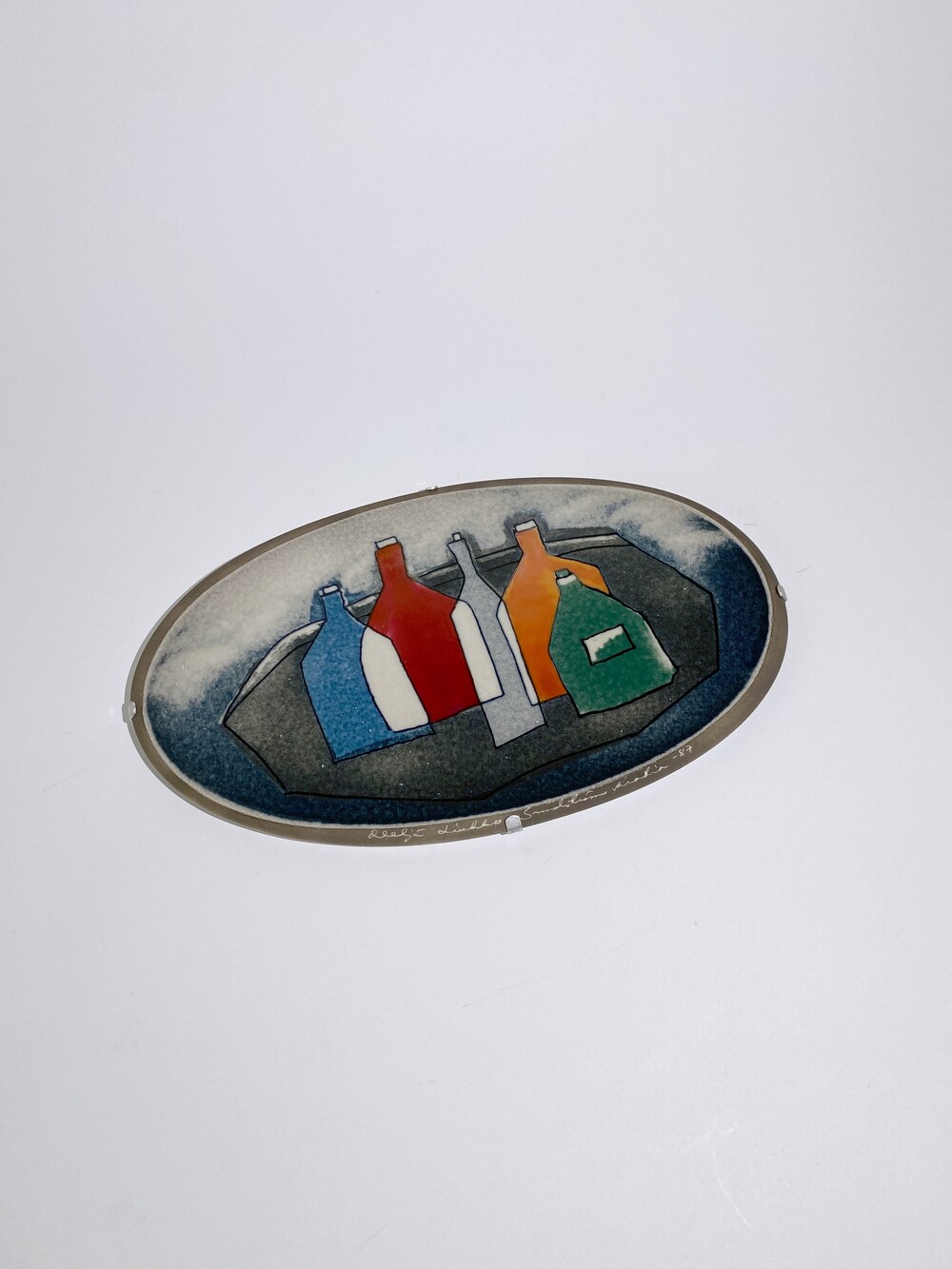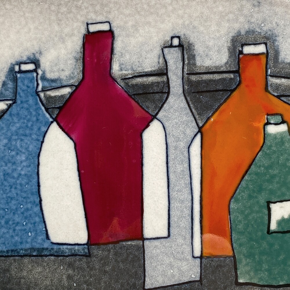 PULLOT 은 핀란드어로 '병'이라는 의미로 다양한 모양의 병들이 간결한 선으로 묘사되어 있습니다. 보는 각도에 따라 자개처럼 빛나는 부분이 독특한 분위기를 전해줍니다.
