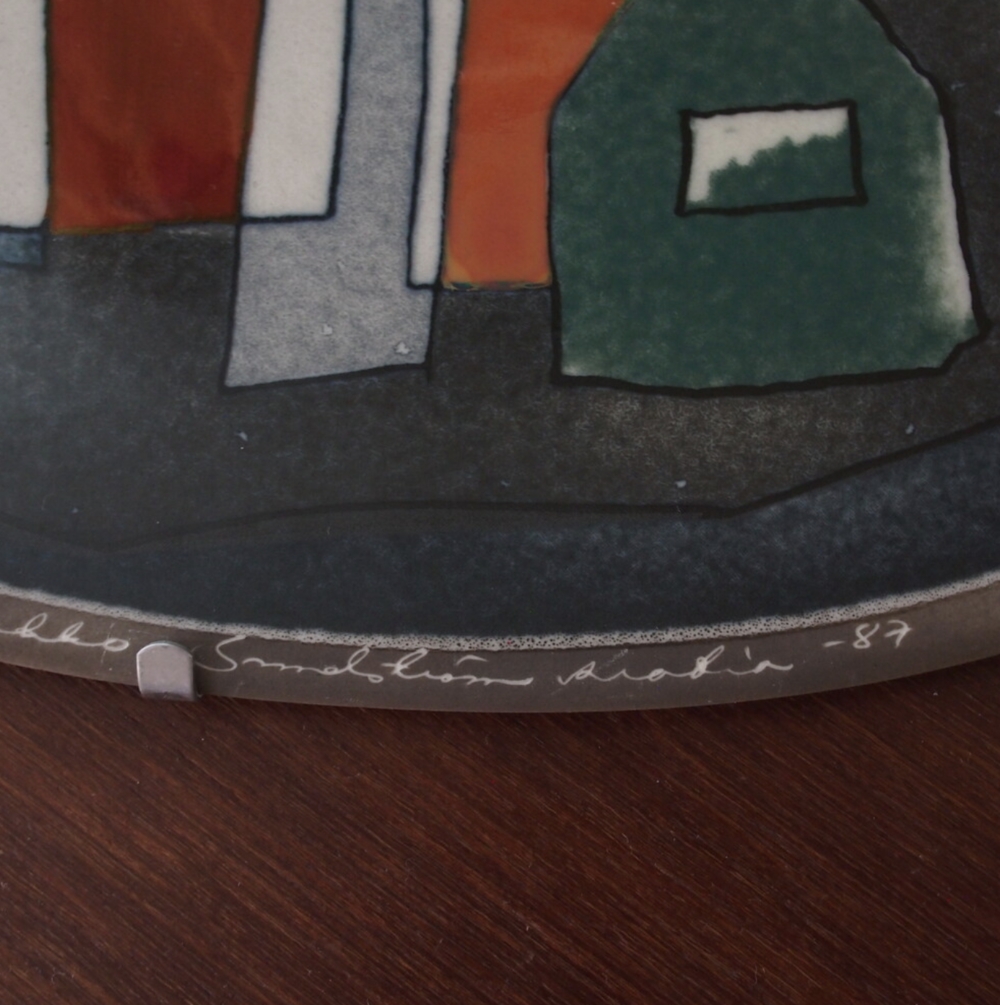 1987년 아라비아 핀란드에서 제작된 Heljä Liukko Sundström 디자인의 빈티지 세라믹 월 플레이트 'PULLOT'입니다.