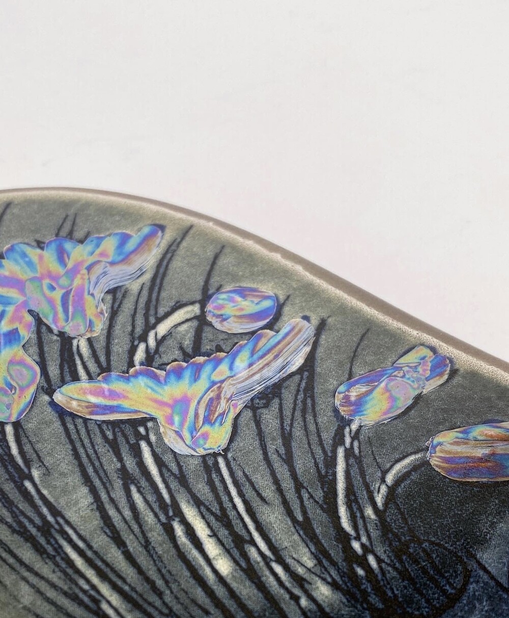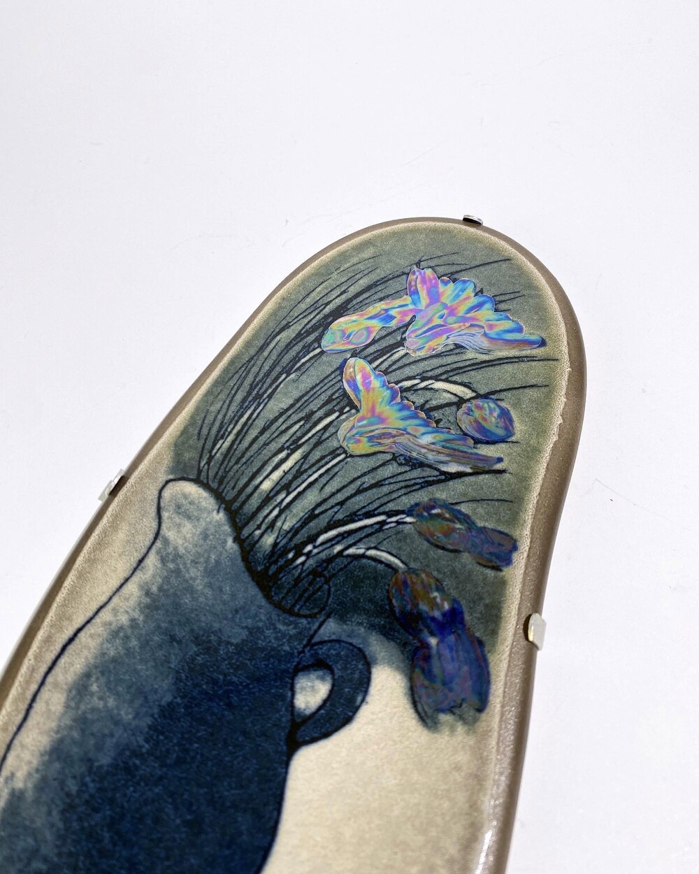 RUISKUKAT은 핀란드어로 '수레국화'라는 의미로 저그 화병에 꽂혀있는 수레국화가 묘사되어 있습니다. 전체적으로 어두운 톤에 자개처럼 빛나게 표현된 수레국화가 묘한 아름다움을 전해줍니다.