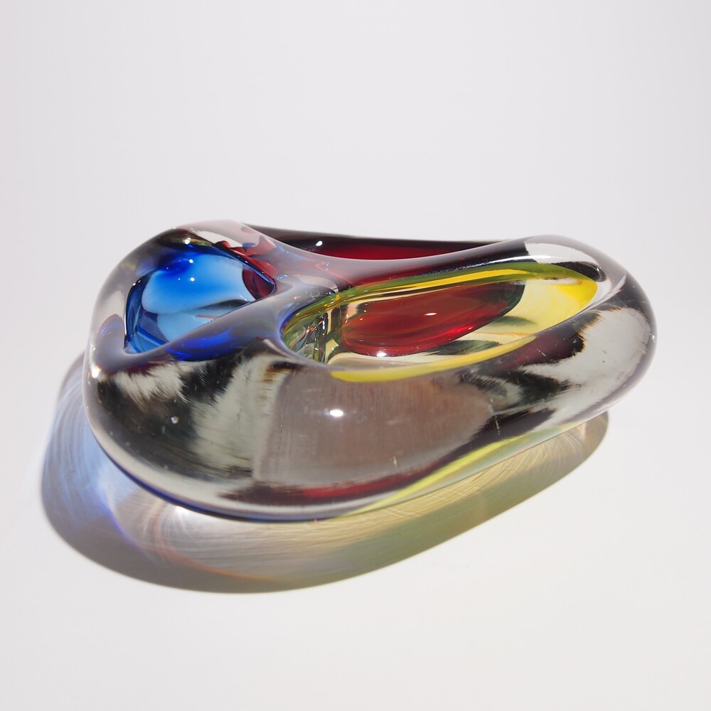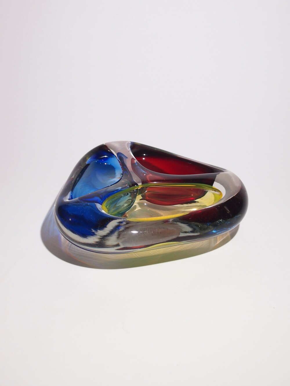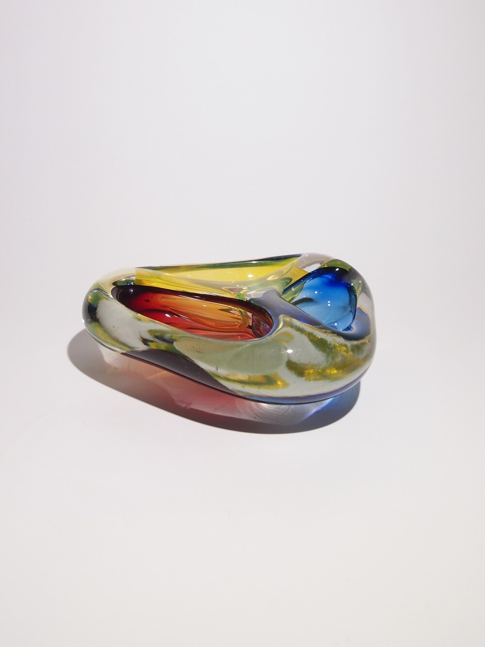 대비되는 색상의 층이 있는 무라노 예술 유리의 한 형태인 'Sommerso'로 제작된 애쉬 트레이입니다.