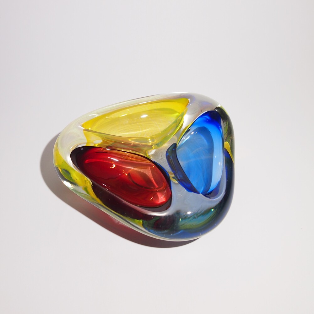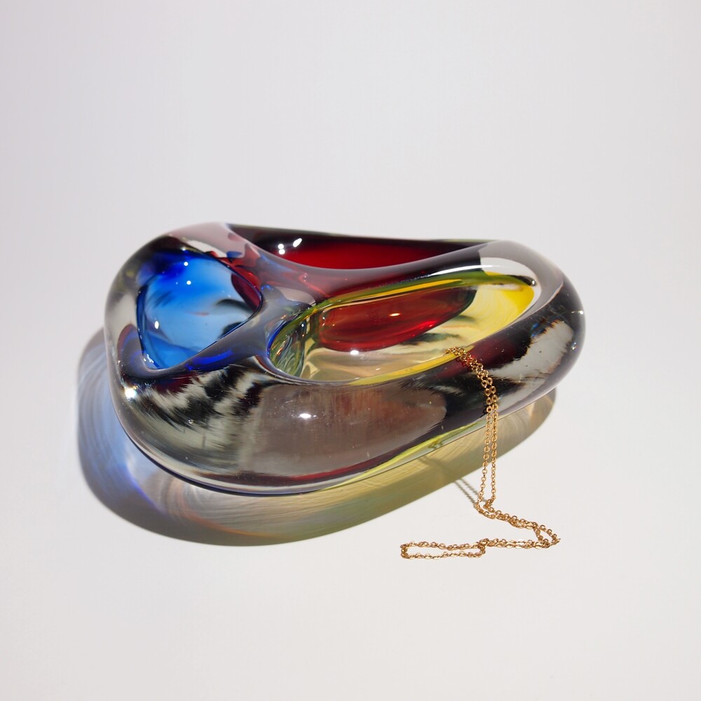 Sommerso는 '물에 잠긴'이란 뜻의 이탈리아어로, 레드와 블루, 옐로우 삼색이 두껍고 투명한 유리 안에 잠겨있는 듯한 모습이 무라노 아트 글라스에서 느낄 수 있는 아름다움을 잘 보여줍니다.