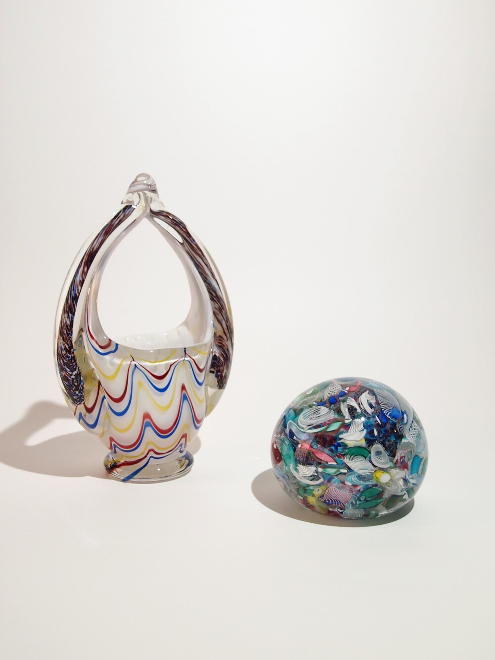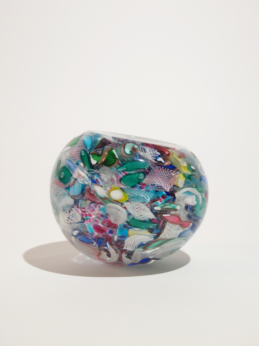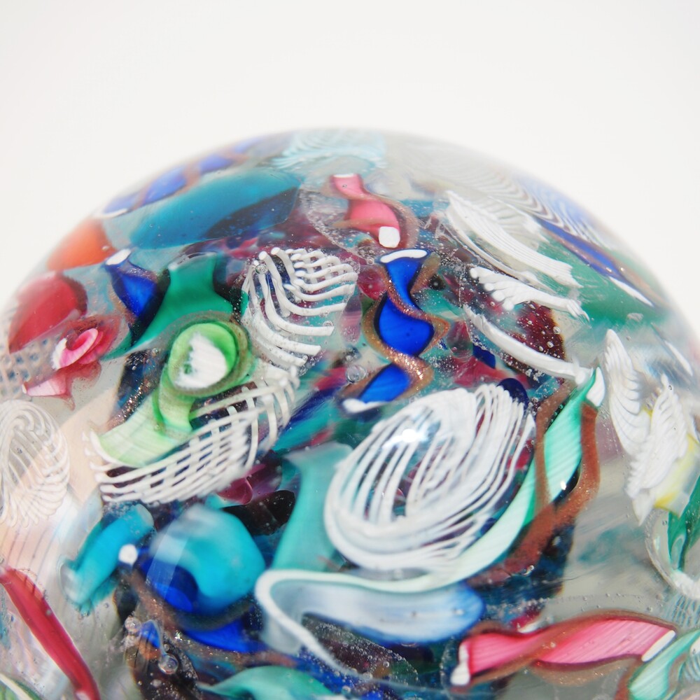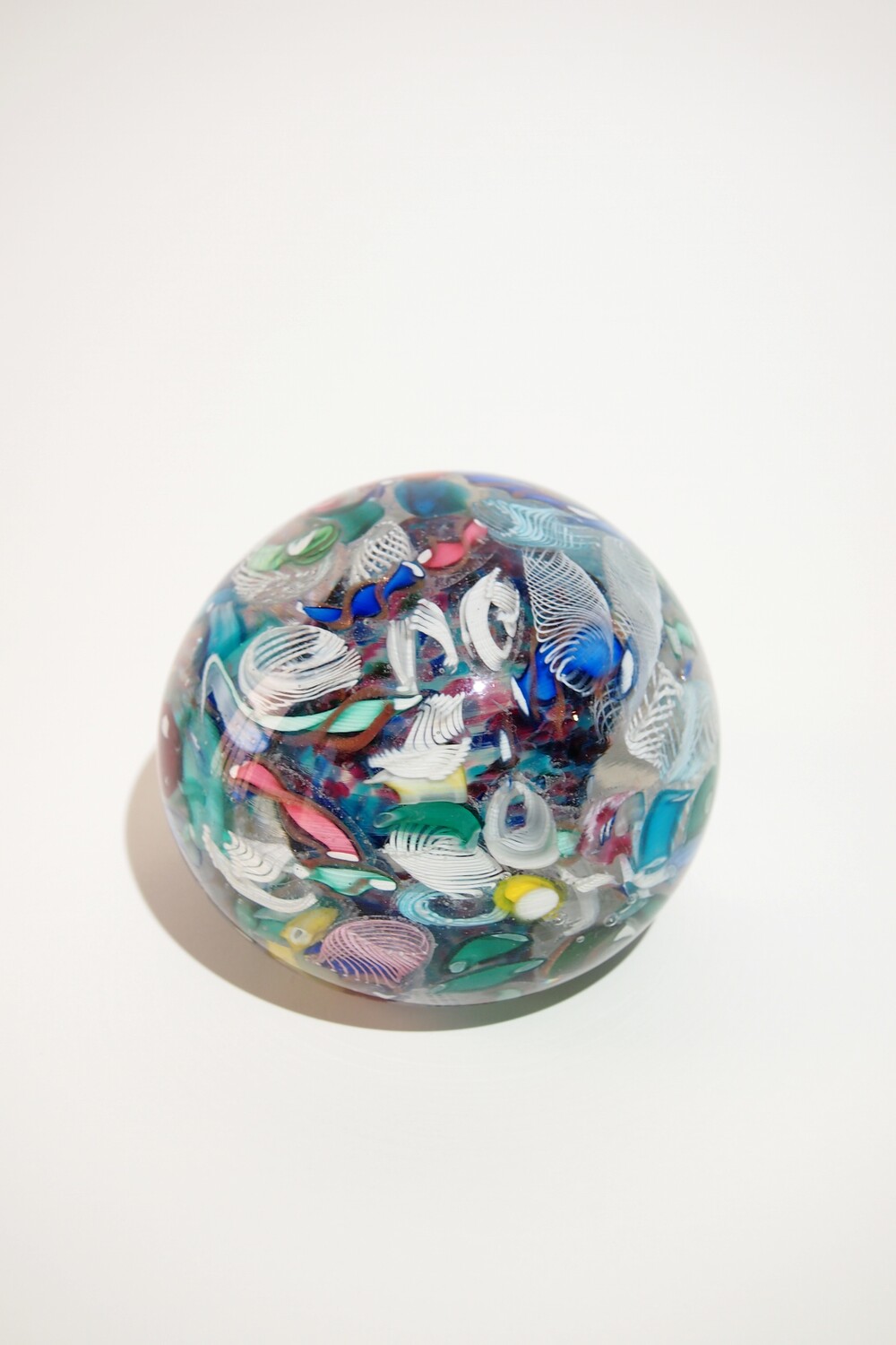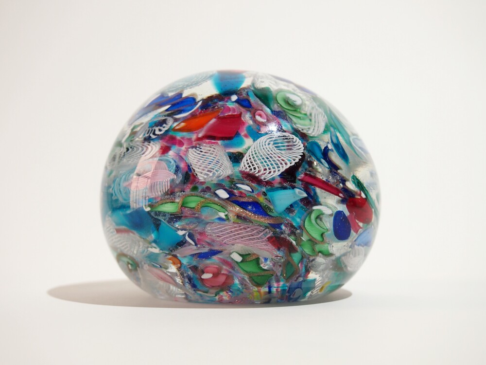 투명한 유리 안에 다양한 색상과 패턴의 조각들이 채워져있는 디자인으로 당시의 무라노 장인들의 감각과 스킬을 단적으로 볼 수 있는 유리 문진입니다.