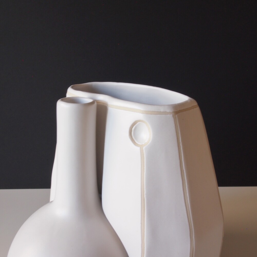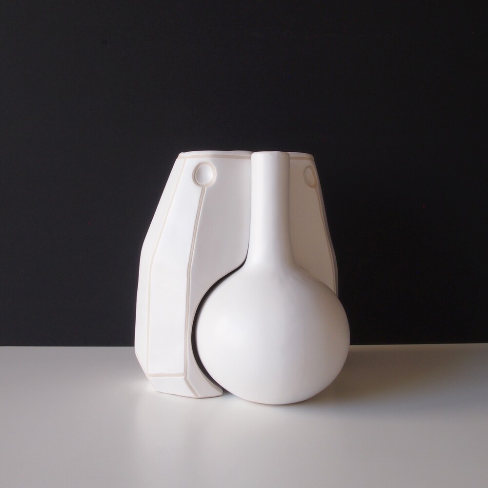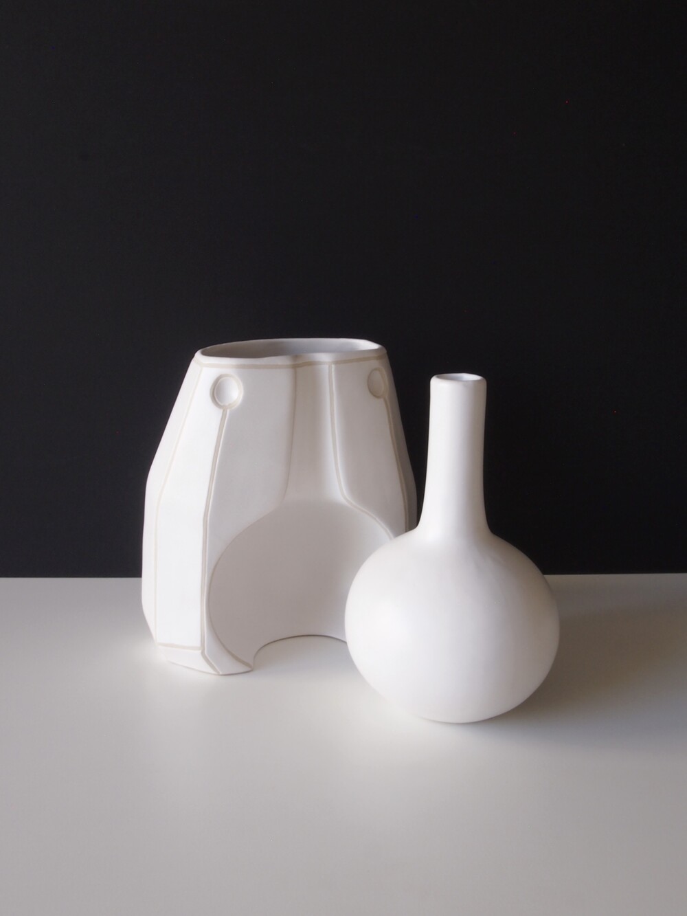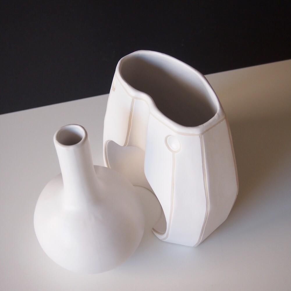 꽃 한, 두 대를 꽂아 두기에 좋은 호리병 모양과 다양한 꽃과 풀들로 어레인지 할 수 있는 넓은 입구를 가진 사각 모양의 두 가지 화병으로 구성되어 있습니다.